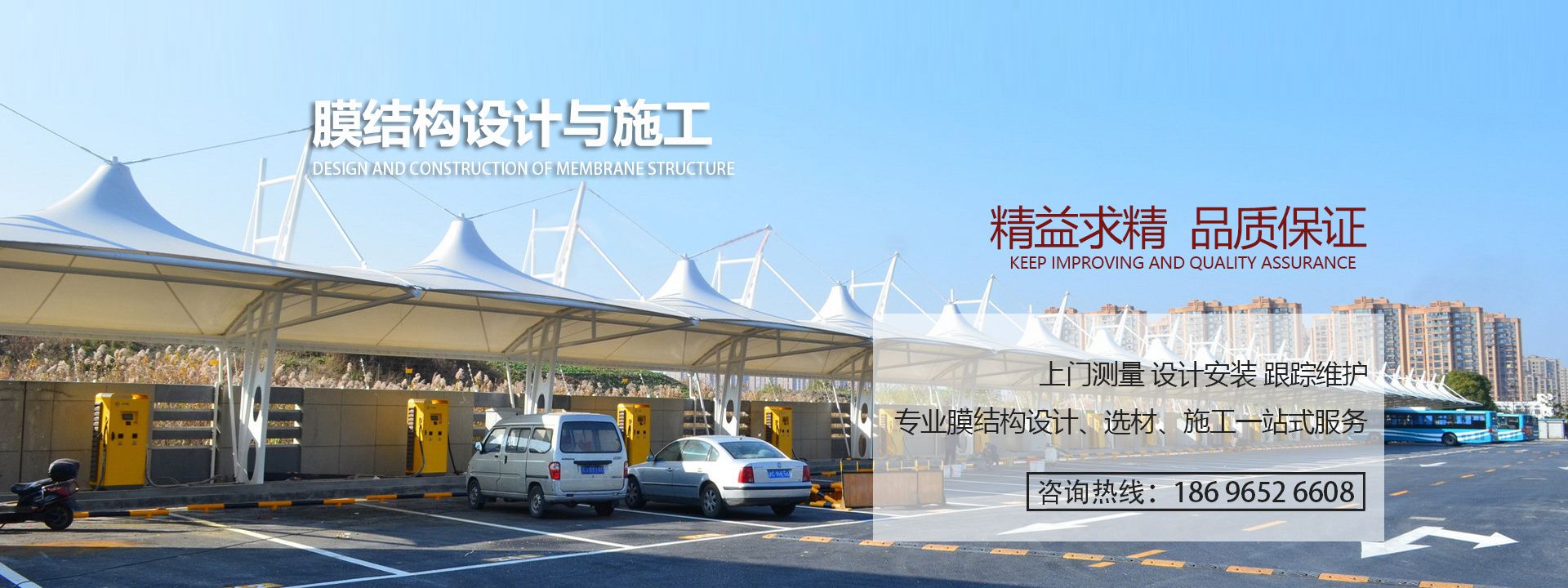 膜结构停车棚,自重轻,具有良好的受力特点——成为大跨度空间结构的主要形式之一。停车场的规划和建设成为现代城市规划的重要组成部分,在以后的建设里会变得越来越重要。